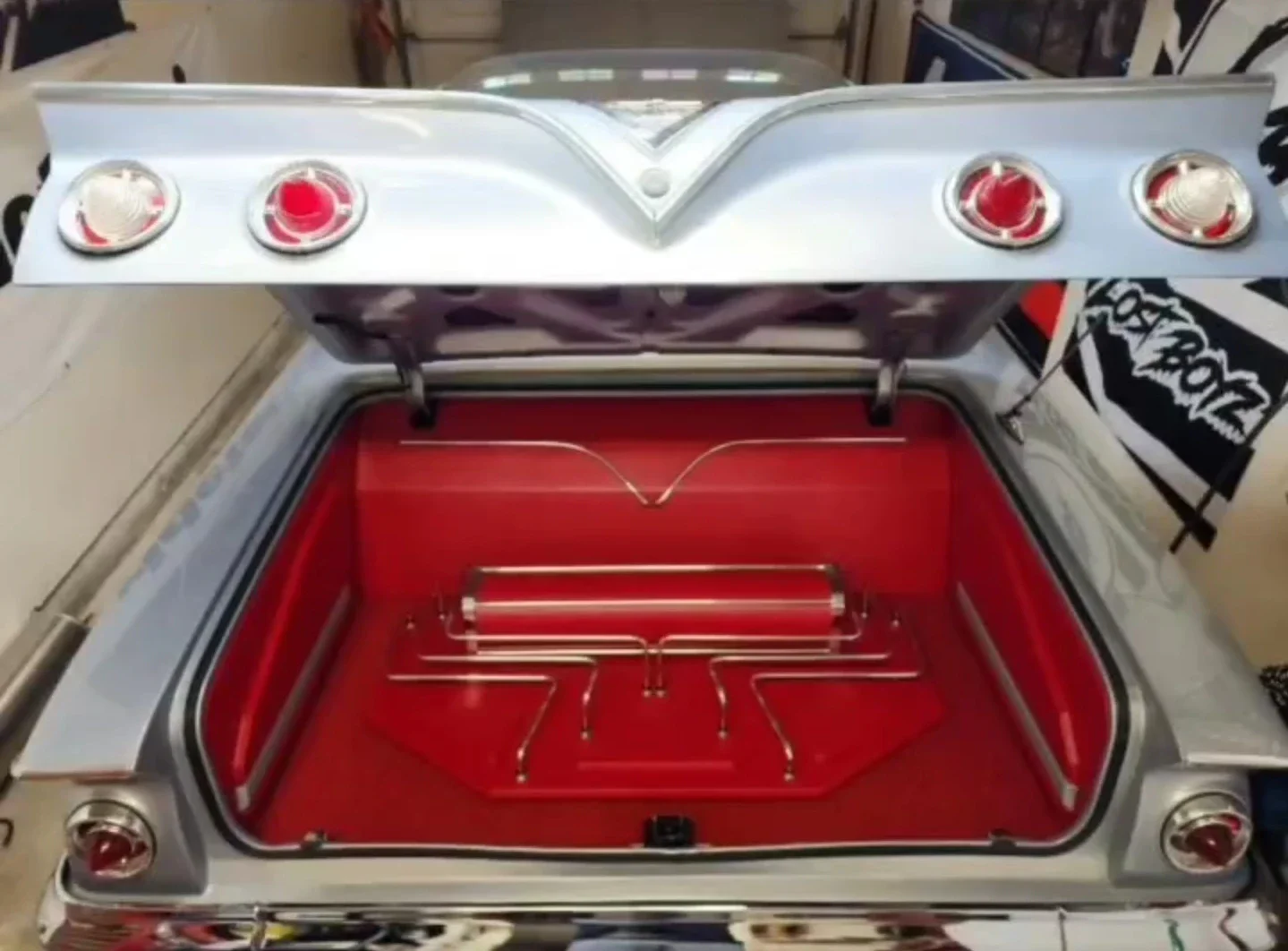 Le Chevrolet Impala BubbleTop de 1961 est un modèle emblématique équipé d’un moteur V-8 de 283 cylindres avec bloc original. Sa transmission est automatique. Sa carrosserie est vernie en bleu Horizon avec bandes rouges et l’intérieur est rouge avec des inserts argentés. La climatisation est disponible de série. L’habitacle est doté de suspension aérostatique E-6 RideTech et de suspension de roues arrière à gaz Fox. Les commandes de suspension peuvent être contrôlées à partir de l’affichage intérieur de véhicule ou par téléphone portable.. Provenance : CA, USA. Disponibilité : 7 semaines, clés en main. 86 000 € tout compris (import, taxes, procédure d’immatriculation).