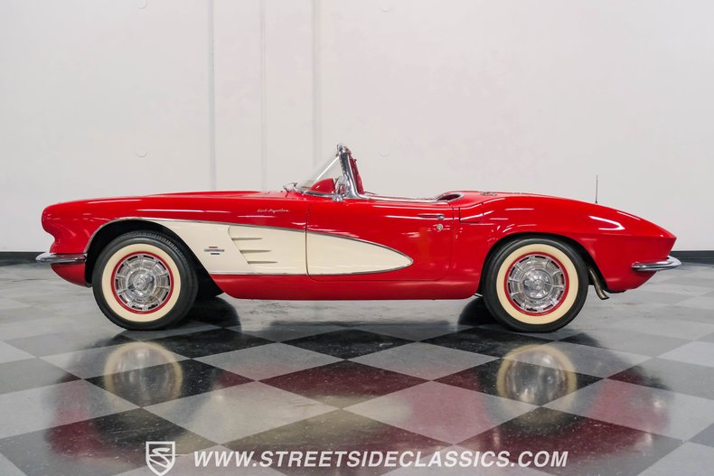 La première génération de Corvette (C1) a été introduite à la fin de l’année modèle 1953. Elle est apparue pour la première fois comme voiture d’exposition pour le Motorama de General Motors de 1953 à New York. Cette voiture a suscité suffisamment d’intérêt pour inciter GM à en faire une version de série à vendre au public. Cette génération a souvent été appelée les modèles “à essieux pleins”. Les années 1953, 1954 et 1955 ont été les seules Corvettes équipées d’une version 235 ci de la seconde génération de Blue Flame en ligne. Le modèle 1955 proposait un moteur V8 de 265 cci en option. Une nouvelle carrosserie a été introduite pour le modèle 1956, avec un nouveau “visage” et des arêtes latérales ; les ailerons de feu arrière ont également disparu. La Corvette 1958 a reçu un rafraîchissement de la carrosserie et de l’intérieur qui comprenait une partie avant plus longue avec des phares quadruples, des embouts d’échappement de sortie de pare-chocs, un nouveau volant et un tableau de bord avec tous les indicateurs montés directement devant le conducteur. En 1961, l’arrière de la voiture a été complètement redessiné avec l’ajout d’une “queue de canard” avec quatre feux ronds. En 1962, le Small-Block de la Chevrolet 283 ci et passé à 327 ci de cylindrée.